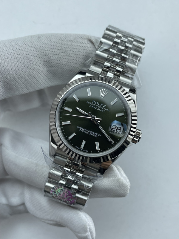 (준비완료/특급배송)NO.3657/QP공장 롤렉스 데이저스트 31mm 여성용 시계 그린 바인덱스 다이얼 플루티드 베젤 쥬빌레 밴드